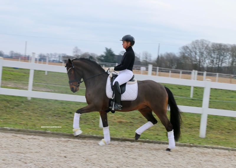 ‼️Anfragen exclusively via the telephone number below ‼️ Location: 49509 Recke | mare | DR | bay | *2010 | 147 cm | FEI passport | v. HET Golden Dream x Verdi Beautifully presented professor with a pony heart of gold! There is no other way to describe the 15-year-old "Godiva" True to her stable name "Happy", she wants to give her rider pleasure every day anew with her absolute willingness to perform, her reliability in lessons and her fearless nature. "Godiva" has a great deal of competition experience and can boast numerous wins and placings from riding competitions to L** tests with percentages of up to almost 72%. She has also been placed in medium (M) level dressage competitions, but this has not been further promoted as she has recently been used exclusively in FEI competitions. In addition to her athletic quality, she is a real treasure to handle and loves to be groomed and groomed or to go for long walks and rides in the forest. "Godiva" is suitable for beginners or for riders who want to enter FEI competitions directly. A current X-ray certificate including back pictures is available. If you are seriously interested, please call +491707941333.