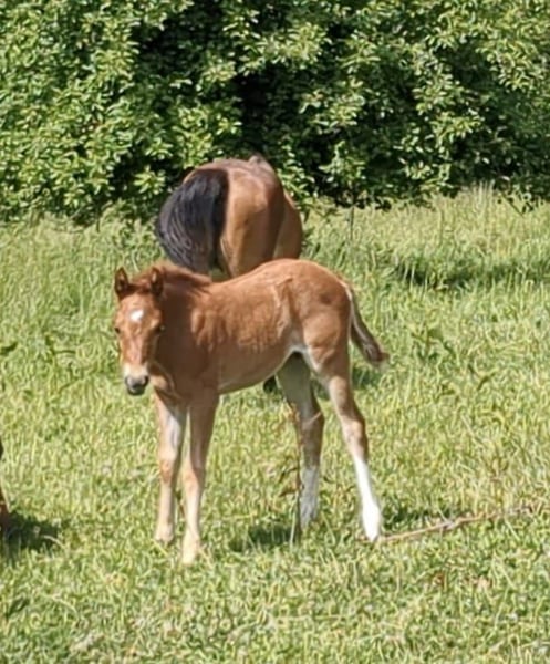 Aus eigener Zucht bieten wir ein bildhübsches, im hengsttyp stehendes Stutfohlen mit zwei gleichmäßig hoch weiß-gestiefelten Hinterbeinen von dem doppelveranlagten Mescal an. Das Fohlen hat drei sehr gute GGA, ist aufgeweckt, selbstbewusst und sehr zutraulich. Vater Mescal war Bundeschampion der 5- und 6-jährigen Springponys und wird seit 7-jährig schwerpunktmäßig in der Dressur bis aktuell Klasse S erfolgreich unterwegs. Mutter Princess Peach ist mit unseren Kindern von Springreiter WB bis Springen Kl. M erfolgreich unterwegs. Sie hat die notwendige Einstellung zum Sport, ist trotzdem immer ein toller Kumpel und ein wahrer Schatz im Umgang. Außerdem hat sie 3 sehr gute GGA, hervorzuheben ist ihre tolle raumgreifende Galoppade. Unsere Magica ist somit für alle Sparten zu haben, eine echte Allrounderin!
