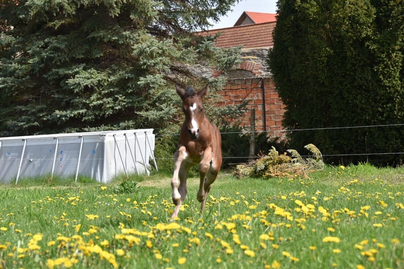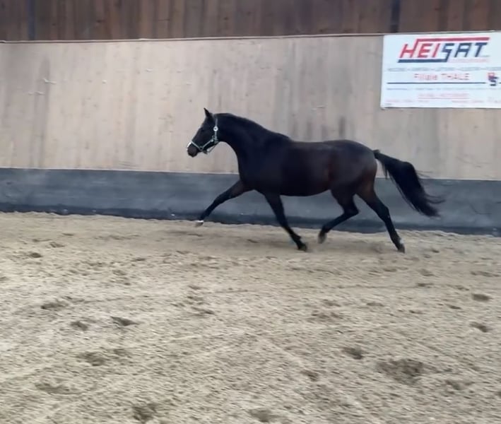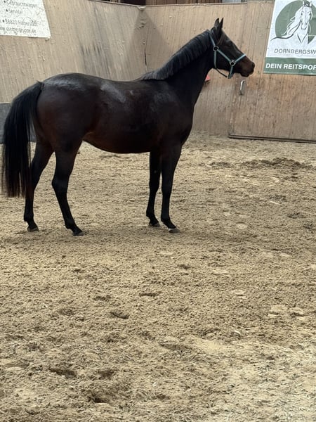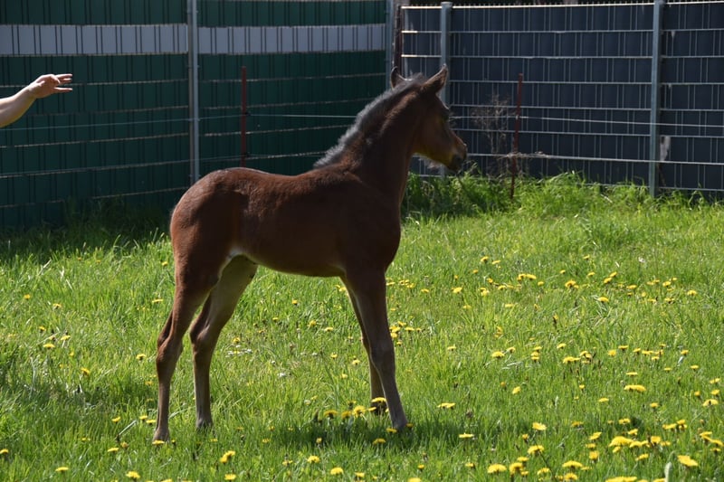Verkaufsanzeige – Deutsche Reitponystute „Dark Lady“ (3 Jahre) Aus Bestandsverkleinerung steht die vielversprechende Deutsche Reitponystute Dark Lady zum Verkauf. Sie ist 3 Jahre jung, kommt frisch von der Wiese und bietet beste Voraussetzungen für Sport und Zucht. Abstammung & Aufzucht • Aufgewachsen im Herdenverband • Sozial, klar im Umgang und artgerecht großgezogen • Unverdorben und roh – ideal für eine individuelle Ausbildung Bewertungen als Fohlen • Championatsfohlen • Typ: 9,0 • Exterieur: 8,0 • Bewegung: 8,5 • Schritt: 9,0 • Gesamteindruck: hervorragend Exterieur & Entwicklung • Aktuelles Stockmaß: ca. 145 cm • Modernes, korrektes Pony mit viel Ausdruck • Sehr guter, elastischer Bewegungsablauf Charakter • Neugierig, freundlich und menschenbezogen • Zeigt sich lernwillig und aufmerksam • Roh und noch nicht gearbeitet – ein Pony zum selbst Ausbilden Einsatzmöglichkeiten • Sportliches Nachwuchspony mit Qualität • Zuchtstute dank hervorragender Typ- und Bewegungsnoten • Für ambitionierte Ponyreiter, Ausbilder oder Züchter. Volles Papier Vater Next Generation x Coke saint of the Life x Danny Gold