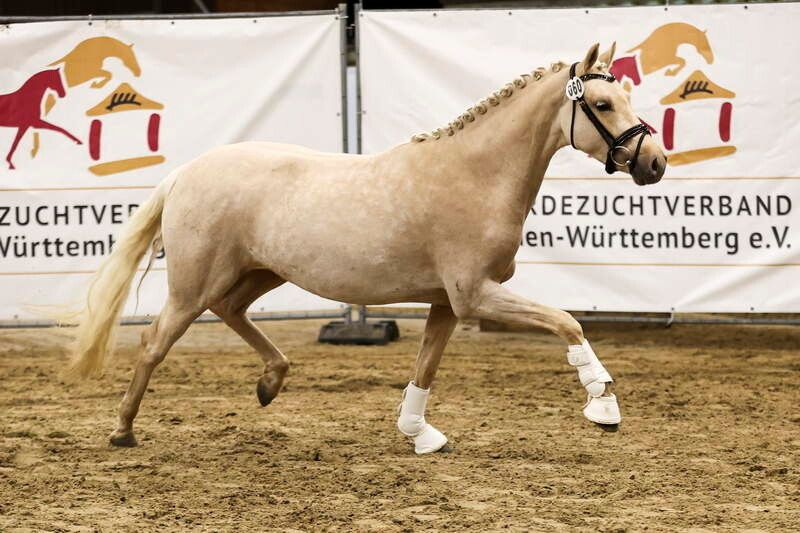Nous vendons notre ponette de selle de 3 ans, issue de Weidner Dream Date, que nous avons élevée nous-mêmes. Ce poney très élégant a déjà remporté une victoire lors d'une compétition en liberté à Marbach. Elle est travaillée en longe selon son âge, mais n’a pas encore été monté en selle. Cependant, elle a déjà porté un tapis de selle. Des radiographies sans anomalies sont déjà disponibles. Nous recherchons des mains expérimentées pour cette ponette, qui sauront apprécier son potentiel et sa qualité. Pour toute question ou intérêt, n'hésitez pas à nous contacter.