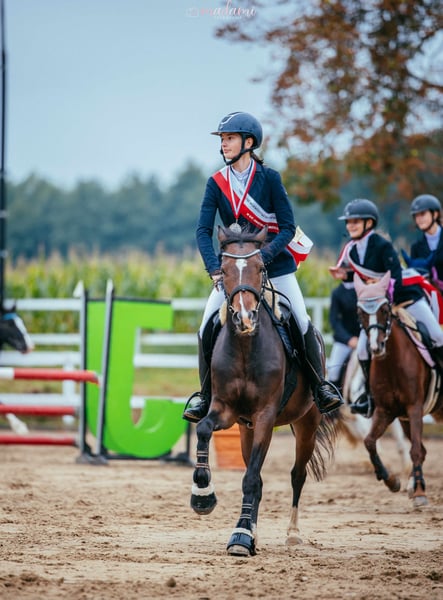 I am selling a talented 4.5-year-old pony who is looking for a loving new home. Nayman is a pony with a big heart for jumping - he has never refused despite his age, confident in the arena. He started competing this season under a teenager and became the vice champion of the Kujawsko-Pomorskie Voivodeship in the Amateur pony category, achieving a very good style score of 1.33. He competes at a level of 70 cm. At competitions and at home, he is trouble-free. He has not been ill, is healthy, and has no vices, coming straight from the breeder. He is trained at the level of Class P in dressage and will also excel in this discipline. Approximately 137 cm at the withers, Group C. A horse with great potential and a good temperament. He is stabled near Włocławek. For interested parties, I can send videos of his rides. Trial rides are paid.