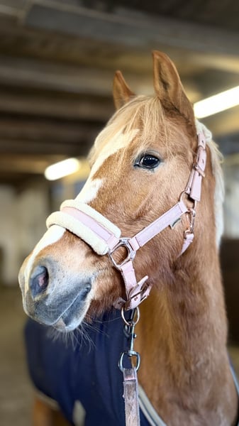 Unsere wunderschöne, 3-jährige Ponystute sucht ein liebevolles Zuhause. Sie wurde ganz behutsam angeritten und zeigt sich dabei absolut brav, ausgeglichen und nervenstark. Bocken oder andere Unarten kennt sie nicht – sie macht alles ruhig und motiviert mit. Auch unser 11-jähriger Sohn reitet sie regelmäßig, und sie zeigt sich dabei stets geduldig und verlässlich. Trotz ihres jungen Alters ist sie schon jetzt ein echtes Familienpony mit Herz und Charakter. Aktuell steht sie noch mitten in der Ausbildung und steckt außerdem voll im Wachstum und in der Entwicklung. Zur Zeit ist sie ca. 140cm groß. Mit weiterer Zeit und liebevoller Förderung wird sie sich sicher noch schön weiterentwickeln – sowohl körperlich als auch reiterlich. Abstammung: Vater: Donatelli VV: Dornik B VM: Dynamik Star Diese Abstammung verspricht nicht nur Qualität, sondern auch Rittigkeit und Leistungsbereitschaft – gepaart mit einem tollen Ponycharakter, der überzeugt! Ein junges Talent mit besten Anlagen – ideal für jemanden, der Freude daran hat, sie weiter auszubilden und eine vertrauensvolle Partnerschaft aufzubauen. Bei ernsthaftem Interesse freuen wir uns über Anrufe oder Nachrichten!