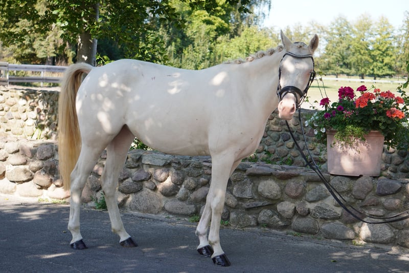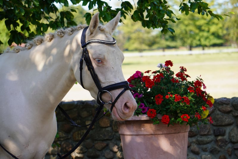 Daisy Deluxe HLH, 3 years old, is looking for a new sphere of activity! She is 1.44 m tall and has a complete girl look. She is equipped with very good basic gaits. She is very well prepared for being started under saddle, and you can get started right away. She can also be backed by us. She is an absolute dream to handle! A perfect children's pony with great movements! Also very interesting for trainers. She is familiar with all kinds of handling, and a current vet check is available! For more information, feel free to contact us personally!