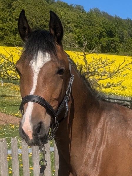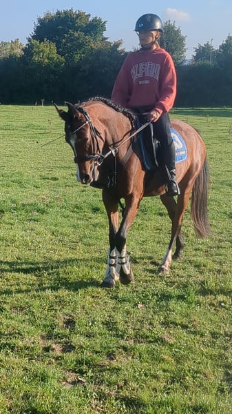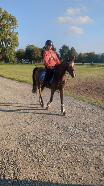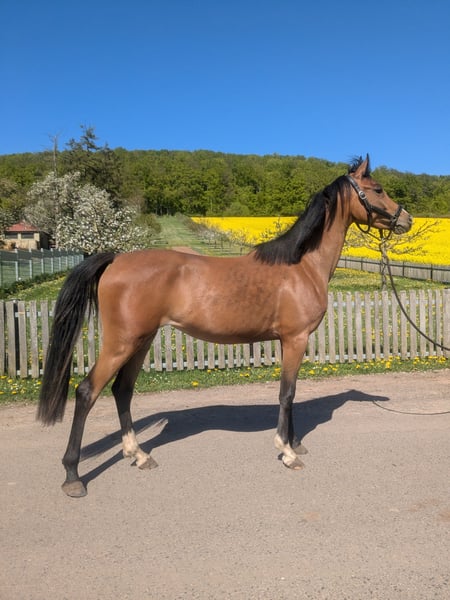 **Sales Advertisement: German Riding Pony Mare** For sale is a charming brown mare of the German Riding Pony breed, born in 2022. With a height of 145 cm, she is perfect for young riders who love jumping. This talented mare already shows promising approaches in jumping and has a friendly, open personality. She is well-mannered, easy to handle, and has a balanced character, making her an ideal partner for young riders. She is healthy and regularly dewormed. If you are interested or have any further questions, please feel free to contact me. Come visit us and get to know this wonderful mare in person!