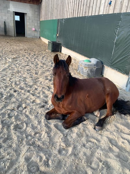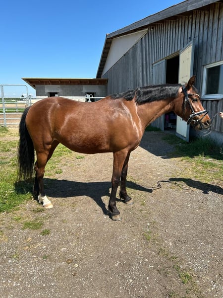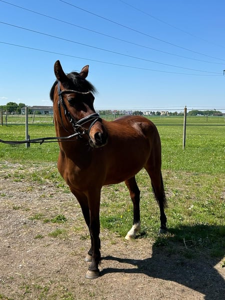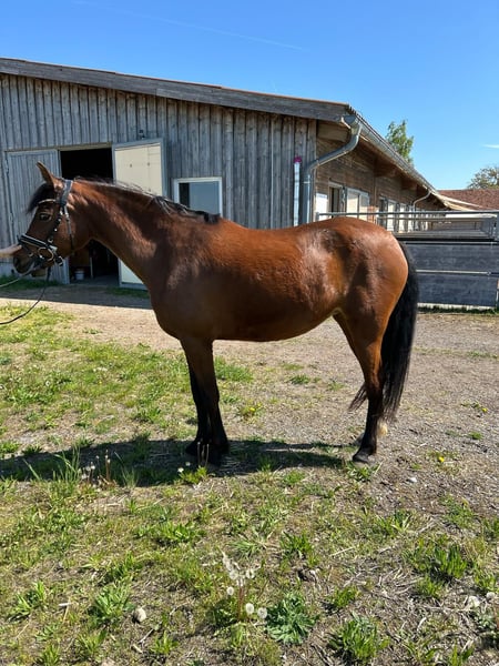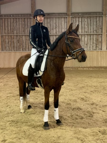 Jolie jument de poney de sport allemand de 4 ans, par D-Gold AT, à vendre en raison d'une réduction de l'effectif. Taille actuelle d'environ 146 cm - elle restera au format poney. Le père D-Gold AT a été champion des champions en 2019 et 2021. Du côté maternel, elle a 2 frères agréés. Day and Night a été troisième au championnat des champions en 2021. D'autres frères et sœurs ont déjà connu le succès dans le sport. Diva Royal est avec nous depuis son âge de poulain, elle est extrêmement attachée aux humains, claire d'esprit et absolument gentille à manipuler. Elle possède 3 allures au-dessus de la moyenne et énergiques. Elle a été longée et est actuellement en cours de débourrage. Un poney de rêve qui, avec une formation supplémentaire, sera certainement adapté aux jeunes et aux enfants.