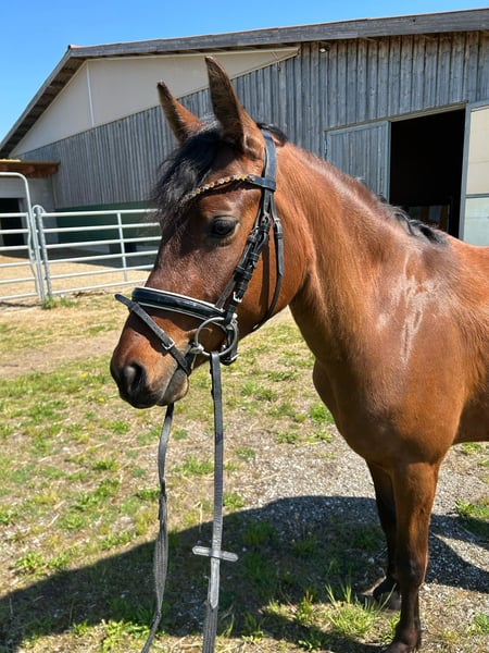 Bildhübsche 4 jährige Deutsche Reitponystute von D - Gold AT wegen Bestandsverkleinerung zu verkaufen. Stockmaß derzeit ca 146 cm -bleibt im Ponymaß. Vater D-Gold AT war 2019 und 2021 Bundeschampion. Auch mütterlicherseits 2 gekörte Brüder. Day and Night war 2021 Dritter beim Bundeschampionat. Weitere Geschwister sind bereits erfolgreich im Sport. Diva Royal ist seit dem Fohlenalter bei uns, ist extrem menschenbezogen, kopfklar und absolut brav im Umgang. Sie besitzt 3 überdurchschnittliche und schwungvolle GGA . Sie ist longiert und wird zur Zeit angeritten. Ein Traumpony , dass bei weiterer Ausbildung sicher auch für Jugendliche und Kinder geeignet ist.