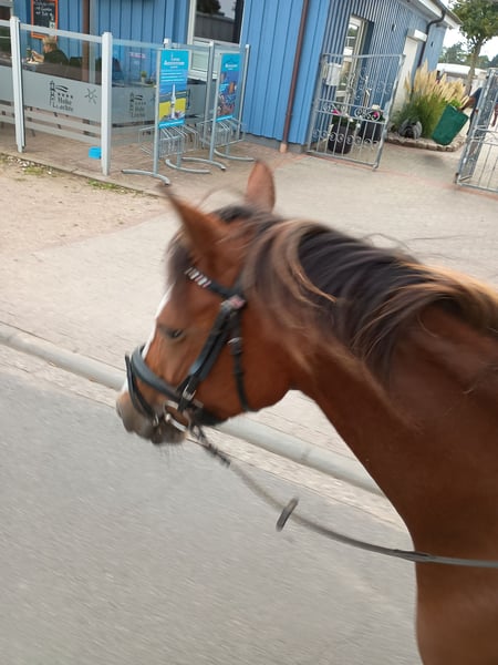 Wir bieten unsere 4 jährige Endmaßpony Stute zum Verkauf an, da sie leider mit 147 cm zu klein für uns geblieben ist. Seit Dezember letzten Jahres wird sie von einem 13 jährigen Mädchen geritten. Mia ist immer motiviert und lernt sehr schnell. Sie kann entspannt alleine ins Gelände, auch Straßenverkehr macht ihr keine Sorgen. Ob Busse, Trecker, Fahrradfahrer, Kühe und Hunde, sie ist gelassen und vertraut ihrem Reiter. Auch Bodenarbeit und Tricks lernen findet sie toll. Sie kennt Longe und Doppellonge. Wir waren auch schon im Reiterpark mit Mia und haben dort kleinere Sprünge mit ihr gemacht. Auch dort zeigte sie sich motiviert aber entspannt. Mia ist in allen Bereichen immer brav im Umgang und selbst von fremden Kindern führbar. Daher denken wir trotz ihres Jungen alters ist sie durchaus auch für Kinder interessant. Ebenso können wir sie uns auch für ambitionierte Turnierreiter vorstellen. Sie liebt es gekuschelt und betüddelt zu werden. Menschliche Zuwendung ist ihr wichtiger als andere Pferde. Sie ist mit fremden Pferden eher unsicher, daher wäre uns wichtig, dass Mia in eine ruhige, kleine, reine Stutenherde ziehen kann. Zwei "Schönheitsfehler" hat Mia. Sie hat vorne einen leichten Bockhuf, der ihr aber keine Probleme bereitet und als Fohlen korrigiert wurde. Und sie hakt manchmal aus der Ruhe heraus mit ihrem Hinterbein. Das zeigt sich nur wenn sie länger stand, also über Nacht z.b.. unterm Reiter hat sie keine Probleme, auch nicht in Wendungen. Unsere Osteopathin sagt, dass sie keine Schmerzen hat, aber was genau es ist können nicht sagen. Selbstverständlich ist Mia darüber hinaus gesund, geimpft, entwurmt, regelmäßig beim Hufschmied und ihre Zähne wurden auch kontrolliert. Bei Interesse bin ich telefonisch vormittags bis ca 13 Uhr am besten zu erreichen.