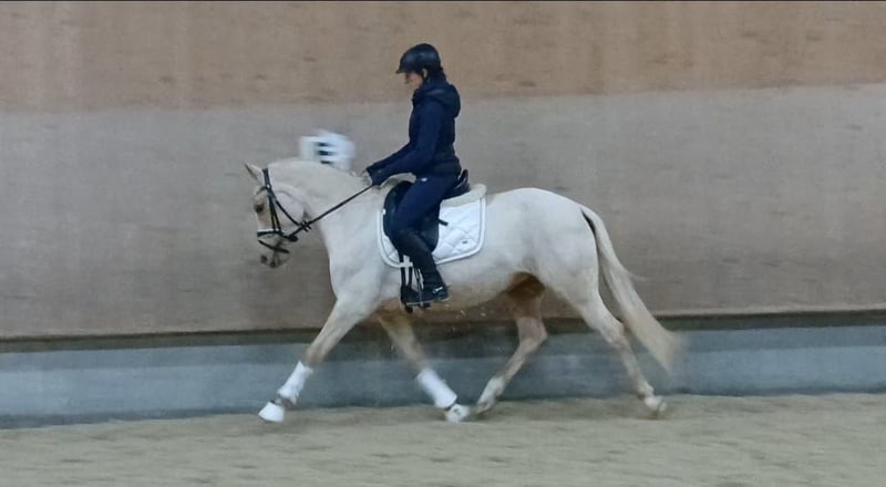 Zum Verkauf steht unsere selbstgezogene Reitponystute Cosmic Girl B Sie ist rahmig und somit auch für etwas größere Ponyreiter geeignet. Stm. 147 cm für 2026 bereits eingemessen. Sie war 2025 in Reitpferdeprüfungen platziert und nominiert fürs Bundeschampionat. Zusätzlich ist sie bereits Staatsprämienstute. Sie hat gute GGA und ein ausgeglichenes Wesen. Auch beim Freispringen und ihren ersten Sprüngen unter dem Sattel zeigt sie viel Freude bei einer guten Übersicht und Manier. Sie hat 21 Röntgenbilder obB aus Sept. 2025. Ihr Vater ist Cosmo Royale, ihre Mutter stammt ab von Golden West x Don't Worry be Happy. Die Grundlagen sind gelegt, jetzt sucht Cosmic Girl B fördernde Hände. Weitete Videos vorhanden, bitte per WhatsApp unter 0172-7253069 anfordern MwSt ist ausweisbar Keine Ratenzahlung, kein zur Verfügung stellen