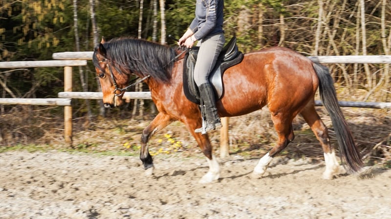 Edessa is a 4-year-old athletic mare with a big heart. She has excellent movement, enjoys pole work and small jumps, and easily goes alone into the outdoor arena or on rides. Sometimes she can be sensitive and a bit particular, but she remains well-behaved and mentally clear, never bucking or rearing. She is in perfect health with clean, correctly conformed legs. She has a sporty build and is well-suited for adult riders.