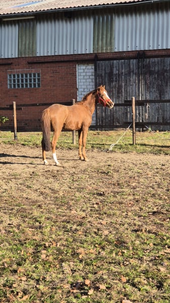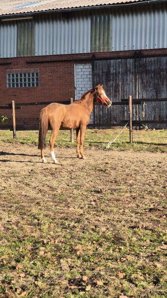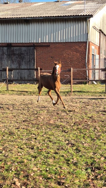 Dorina is a young, still-growing riding pony mare. She has excellent movement, a very correct conformation, and is an absolute sweetheart in handling. Certainly suitable for dressage as well as for breeding. She is a premium and champion foal.