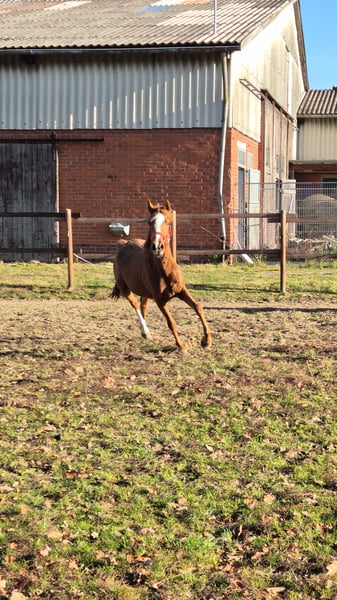 Dorina eine noch voll in der Entwicklung stehende Reitponystute. Sie hat sehr gute Bewegungen, ist ganz korrekt im Gebäude und vom Umgang ein absoluter Schatz. Sicherlich für den Dressursport wie auch für die Zucht eine Offerte. Sie ist Prämien' und Championatsfohlen.