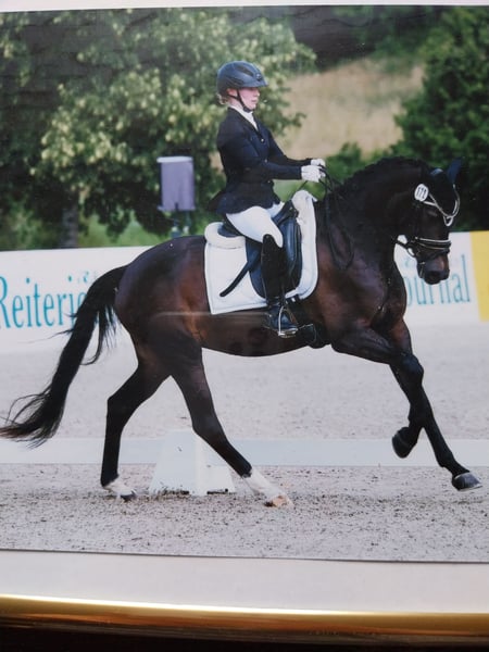 This 3-year-old pony mare has very good quality and already impressed at the competition with a 2nd place in a riding horse test, where she received partial scores of up to 8.5. Coffee is light in the contact and already well ridden. In unfamiliar environments, whether at competitions or on trails, she behaves exceptionally confident and balanced for her age. She is a positively self-assured mare, very compatible with other horses, and well-mannered. In handling, she is very relaxed and has the desired go under the rider without getting hot. She is a training pony with a great future ahead of her and will also be able to collect easily later on. The pony is freshly vetted, clinically sound, and has excellent X-rays + back. We bought Coffee as a foal, and now she is ready to move to a new, wonderful home. A complete video can be sent upon request.