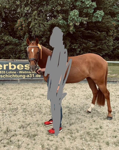 Pony-Zuchtstute zu verkaufen – 5-jährig, charakterstark und zuchtbewährt Zum Verkauf steht unsere 5-jährige Pony-Zuchtstute mit sehr angenehmem Charakter und interessanter Abstammung. Mit einem Stockmaß von ca. 1,43 m überzeugt sie durch ein harmonisches Exterieur sowie ein ausgeglichenes, freundliches Wesen – ideale Voraussetzungen für den Zuchteinsatz. Abstammung: Ombri B × Pilgrim’s Red × Mozart Die Stute stellte im vergangenen Jahr ein gesundes Hengstfohlen von Dallmayr K und führt derzeit ein weiteres Hengstfohlen von Gold Garant bei Fuß. Beide Nachkommen überzeugen durch ihren liebenswerten, ausgeglichenen Charakter, ein korrektes, typvolles Exterieur sowie gute, elastische Grundgangarten. Aus diesem Stamm u.a kommen die gekörten Hengste: Malibu Beach Boy, Black Dynamite, Venustas Crispy Cracker, Cosmo Genial sowie die bis M Springen erfolgreich Leonessa. Sie kennt Trense, Sattel sowie die Arbeit an der Longe. Aufgrund ihrer Qualität und ihres Charakters wurde sie zuerst gezielt in der Zucht eingesetzt, wo sie sich als zuverlässige und sehr fürsorgliche Mutterstute bewährt hat. Aufgrund ihres ausgeglichenen Charakters und ihrer guten Grundgangarten auch beste Perspektiven für eine weitere Ausbildung zum vielseitigen Reitpony. Im täglichen Umgang zeigt sie sich unkompliziert, menschenbezogen, kinderfreundlich und nervenstark. Auch Hunde, Kinder, Trecker und LKWs sind ihr vertraut. Ihre positiven Eigenschaften vererbt sie zuverlässig an ihre Nachkommen und macht sie damit besonders interessant für Züchter, die Wert auf Charakter, Abstammung und Qualität legen. Die Stute ist aktuell im Zuchtverband Weser-Ems eingetragen. Eine erneute Bedeckung bzw. Besamung ist möglich. Röntgenbilder liegen vor. Nachzucht steht auch hier bei uns in der Aufzucht. Bei Interesse schreib gerne eine Nachricht, dann können wir gerne alles weitere besprechen.