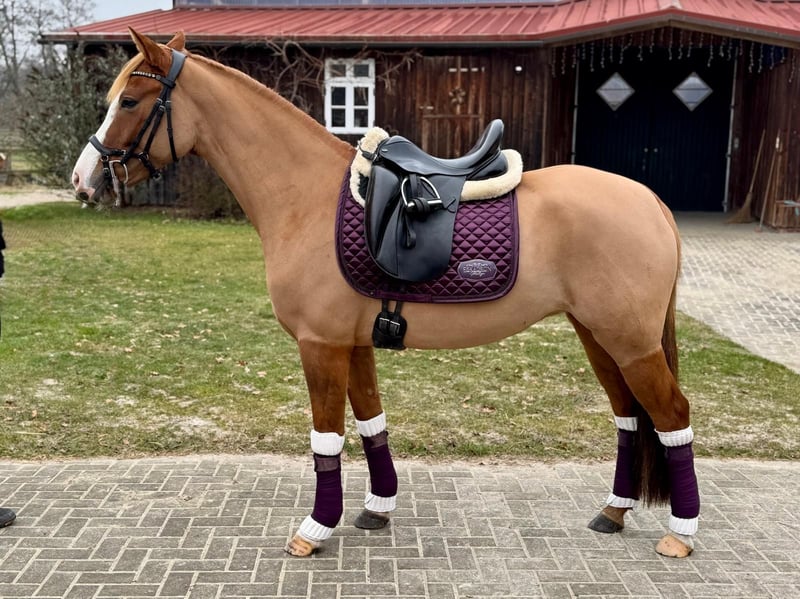 • Deutsches Reitpony • *April 2021 • Fuchsfalbe • El. H. Can Dance x Dimension AT NRW x Dressman I • 1,48m eingemessen • A** - Dressur platziert • Springpferde A hochplatziert, 2. Platz mit 8,0 • E-Springen gewonnen • Gelände-WBO gegangen Zum Verkauf steht eine wunderschöne deutsche Reitpony-Stute, geboren im Jahr 2021. Sie ist eine elegante Falbe mit einem Stockmaß von 148 cm und bringt somit die ideale Größe für ambitionierte Reiterinnen und Reiter mit. Diese talentierte Stute ist besonders im Dressursport zu Hause und überzeugt durch ihre Lernfreudigkeit, ihre angenehme Art und ihr braves Wesen. Sie ist gut ausgebildet, freundlich im Umgang und eignet sich sowohl für den Freizeitbereich als auch für den Turnierreitsport. Sie hat Turniererfahrungen, die Sie in Dressur bis A**, als auch beim Springen bis zur Springpferde A* (8,0)mit Platzierung nachweißen kann. Auch in der Vielseitigkeit hat Sie erste Erfahrungen gesammelt, die sie bisher gut gemeistert hat. Gelände alleine stellt auch kein Problem da! Sie wurde am 09.11.2025 mit 1,48cm eingemessen! Gerne ist ein Probereiten möglich! Röntgenbilder von Januar 2026 sind inklusive Rücken und Hals vorhanden und können auf Wunsch gerne versendet werden! Bei Interesse freuen wir uns auf Ihre Kontaktaufnahme!