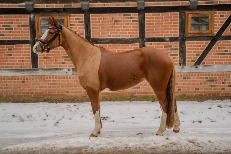 Zum Verkauf steht eine 4,5 jährige XXL Reitponystute, die nicht nur durch ihre außergewöhnliche Schönheit, sondern vor allem durch ihren absolut klaren und ehrlichen Charakter überzeugt. Besonders hervorzuheben ist zudem ihre sehr gute Abstammung, die ihre Qualität und ihr sportliches Potenzial zusätzlich unterstreicht. Nach dem Anreiten im Sommer durfte sie noch einmal eine Pause auf der Weide genießen. Seit November ist sie wieder regelmäßig in Arbeit und zeigt sich dabei sehr motiviert, lernwillig und mit einer tollen Arbeitseinstellung. Sie ist doppelt veranlagt und präsentiert sich sowohl in der Dressur als auch im Springen sehr talentiert. Dabei bleibt sie stets konzentriert bei ihrem Reiter, ist nicht umweltorientiert, nervenstark und unerschrocken. Aufgrund ihres ausgeglichenen Wesens und ihrer guten Rittigkeit können wir sie uns sehr gut als Mutter-Tochter-Pony vorstellen. Sie vermittelt dem Reiter ein sicheres und angenehmes Gefühl und ist dabei brav und zuverlässig. Ein Pony mit viel Potenzial, hervorragender Abstammung und einem Charakter, den man sich nur wünschen kann. Bei ernsthaftem Interesse freuen wir uns über eine Nachricht.