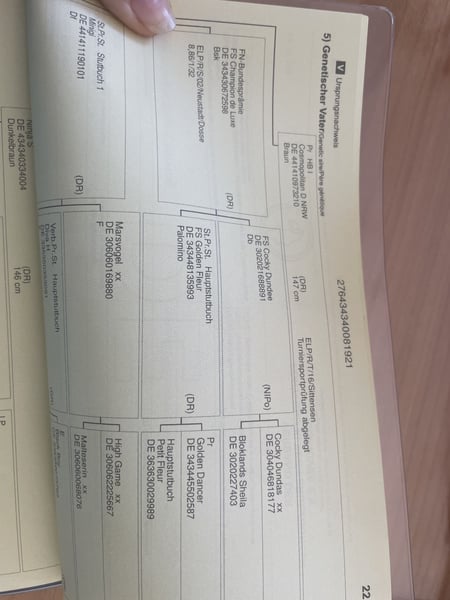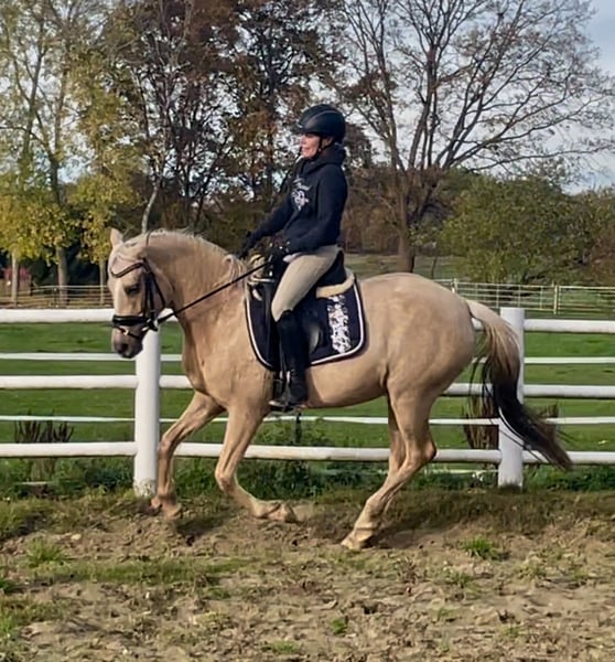 We are offering our beautiful, sweet pony mare for sale with a heavy heart. She is exceptionally gentle and affectionate in handling, very human-oriented, and loves cuddles. She has an excellent pedigree and, accordingly, possesses very good basic gaits. Under saddle, she is very motivated, displays a great work attitude, and moves forward with enthusiasm. She is very easy to sit and simply a pleasure in every aspect and area. She is kept with us in a small mixed herd and tends to be lower in the pecking order. She has never been ill a single day during her time with us. She measures approximately 1.48 meters (about 15.2 hh). She loads calmly onto the trailer, stands nicely for the farrier, and is neither spooky nor tense for her age. Buckling, rearing, or other bad habits are unfamiliar to her – she always wants to do everything right and please her handler. Of course, with further training, she has the potential to become an FEI pony for the big arena – but does every good pony have to become an FEI pony? We wish for our little mare to find a 5-star home where she is regarded as a family member, not just a sport horse, and where she receives the love, cuddles, and attention she deserves. We are not in a hurry to part with her. Due to her friendly, fearless nature and her good breeding, we can very well imagine her as a children's pony or, ideally, as a mother-daughter pony with further training. If you are genuinely interested, please feel free to contact us via WhatsApp at: 016097233628.