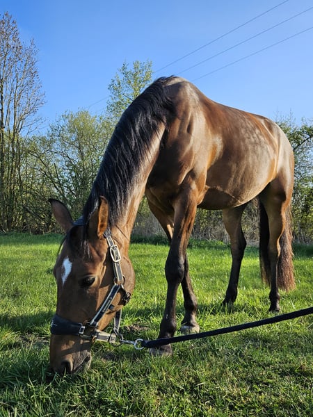 Wir müssen das Pony leider aus privaten Gründen zeitnah abgeben, da unsere Kinder es nicht mehr reiten. Zum Verkauf steht eine wunderschöne braune Deutsche Reitpony Stute aus April 2019. Sie hat ein Stockmaß von 144 cm und deckt auch Erwachsene gut ab. Sie wurde mit 4,5 Jahren schonend angeritten, stammt von DARK HIGHLIGHT AT x D-DAY AT ab und ist auch als Zuchtstute eingetragen. Sie hat eine ansprechende Erscheinung, einen freundlichen Charakter und eine hohe Lernbereitschaft. Die Stute hat ein gutes Grundtempo, ist brav im Umgang und in allen drei Gangarten gut zu reiten (mit und ohne Ausbinder) und dabei auf einem soliden A-Niveau. Auch erste Sprünge unterm Reiter hat sie bereits absolviert, dies wurde jedoch noch nicht weiter vertieft, da wir uns auf die Dressur konzentriert haben. Beim Freispringen zeigt sie viel Spaß und Potenzial. Sie hat sehr gute Hufe und ist barhuf unterwegs. Beim Hufschmied zeigt sie sich stets fromm. Sie ist kein Anfänger- oder reines Kinderpony und braucht einen erfahrenen und konsequenten Reiter, der sie weiter ausbilden und fördern kann. Im Umgang mit unsicheren Reitern zeigt sie sich manchmal etwas schreckhaft, was jedoch durch vom Reiter vermittelte Sicherheit ausgeglichen werden kann, hier braucht sie einfach noch mehr Erfahrung. Sie ist aktuell geimpft, entwurmt und besitzt einen aktuellen Pass. Sie steht momentan in Boxenhaltung, in einer gemischten Herde aus alten und jungen Ponys, wo sie sich sehr verträglich zeigt. Gesundheitlich hat sie sich bei uns robust und unanfällig gezeigt, eine AKU auf eigene Kosten kann gerne von einem Tierarzt nach Wahl durchgeführt werden. Eventuell kommt auch eine Zurverfügungstellung (bei voller Kostenübernahme) in einen näheren Umkreis für uns in Frage. Für weitere Informationen oder einen Besichtigungstermin stehe ich Ihnen gerne zur Verfügung, bitte kontaktieren Sie mich per Mail, gerne rufe ich auch zurück. Videos können gerne auf Anfrage zugesendet werden. Melden Sie sich gerne bei Interesse!