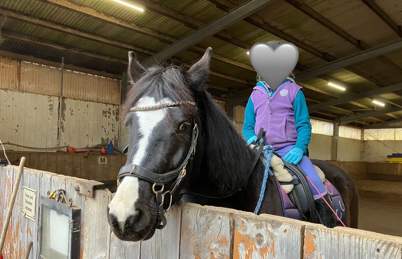 Schöne deutsche Reitponystute mit einmaliger ganz besonderer herzförmiger Blesse. Wir haben sie 2025 über das Ponyforum gekauft. AKU von DEZ 2024 inkl Röntgenbilder ohne Befund liegt vor, es kann gerne auf eigene Kosten eine AKU durchgeführt werden. Das Pony hat ein ganz liebes zutrauliches Wesen und wurde im letzten Jahr hauptsächlich von Kindern geritten, auch von Anfängern an der Longe wo sie stets lieb ist. Wir gehen auch regelmäßig spazieren, Traktoren, Kinderwagen, Roller, Baustellen etc. sind kein Problem für sie. Da wir leider großes Pech mit einer Sattlermeisterin hatten, wurde das Pony zu lange mit einem unpassenden Sattel geritten wodurch sich Rückenschmerzen entwickelt haben, verbunden mit einem Abbau von Muskeln im Rumpfträger-und Rückenbereich. Außerdem haben sich dadurch Muskelverspannungen gebildet, die momentan bereits durch Physio und Osteopathie behandelt werden. Es ist wichtig, dass dies verantwortungsvoll wieder aufgebaut wird, was sicherlich Geduld erfordert um das Pony nicht zu überfordern. Deswegen wird sie unter Ihrem eigentlichen Wert verkauft. Wichtig für sie ist auch die Offenstallhaltung mit anderen Pferden. Das Potential bringt sie mit, ein tolles Kinderpony zu werden und sie deckt auch Erwachsene bis ca 165 cm / 55 kg sehr gut ab. Da wir eben nun keinen Sattel haben, ist probereiten nur bedingt möglich (Kinder können auf dem Westernpad reiten). Sie läuft problemlos barhuf und nicht fühlig im Gelände, Hufpflegerin ist kein Problem, sie macht eigentlich alles mit. Bei neuen Sachen ist sie neugierig statt nervös. Sie ist turnierkonform geimpft(Herpes und Influenza) und regelmäßig entwurmt. Diese liebe 6jährige Stute ist ein tolles Pony, mit welchem sich Kinder zusammen entwickeln können. Wichtig ist, dass eine verantwortungsvolle Person mit viel Pferdeerfahrung dies begleitet, dann steht einer großen Pferdefreundschaft nichts mehr im Weg! Wir verkaufen sie, da wir für ihr erforderliches Training nicht genug Zeit haben um dem Pony gerecht zu werden. Außerdem wird sich unsere familiäre Situation ändern so dass wir voraussichtlich umziehen müssen und das Pony dorthin nicht mitnehmen können. Reitvideos sind vorhanden mit Kindern. Bei Interesse/weiteren Fragen einfach melden.