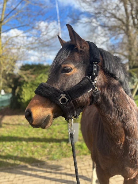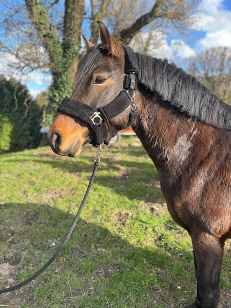 Chicca ist eine sehr schicke 6 Jährige, braune, 147cm grosse Deutsche Reitpony Stute. Mutter ist Cozy Girl G die in ihren jungen Jahren auf dem Bundeschampionat war. Vater ist der Berühmte Celebration WE der hoch erfolgreich in der Dressur war, also stehen für Chicca alle Türen offen.Ich habe sie selbst gezogen und durch Zeitmangel erst jetzt angeritten. Das war überhaupt kein Problem. Also wer sein Pony selbst ausbilden möchte, hat man mit ihr die Chance dazu. Sie ist ziemlich unerschrocken, da sie bei uns auf dem Hof mit Maschinen und anderen Tieren gross geworden ist. Sie hat keine AKU und ist nicht geimpft. Beim Hufschmied war sie immer regelmäßig. Hänger fahren kennt sie auch nicht. Hinten rechts hatte sie vor 3 Jahren einen Griffelbeinbruch der ausgeheilt ist. Vorne links hat sie einen leichten Bockhuf. Bei weiteren Fragen oder ein Video bitte gerne melden. Platz vor Preis.