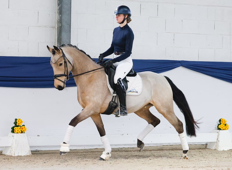 Our collection features a carefully selected range of riding ponies suitable for all disciplines: training, breeding, and children’s ponies. You can view the entire collection here: https://ponyforum.auction Achievements: placed in dressage horse class L, victorious and placed in dressage horse class A, placed in show jumping competitions, 3rd place at the State Championships, participant in the Federal Championships, placed in WBO, candidate for State Premium, and scored 8.0 in the mare performance test. The six-year-old mare Bahia Dancing Girl has already enjoyed a remarkable career. No matter which competition she has been entered in so far, she has always been among the top of her age group! At the elite mare show, she was awarded the State Premium candidate status, and subsequently completed her mare performance test with an outstanding score of 8.0. Her success continued under saddle, with achievements in all levels of training tests, and she has competed successfully at both regional and national championships! Bahia is an extremely motivated yet very calm and easy-ride pony, as demonstrated by her WBO successes with an eleven-year-old girl in the saddle. With her solid and well-established training and her high basic quality, Bahia is certainly a promising candidate for the journey to Warendorf later this year. From a breeding perspective, this mare could also be of interest: her sire, D-Power AT, was the winning stallion of the Westphalian main licensing, and her dam has already produced several licensed stallions, such as Diamonds Showtime, as well as highly successful sport ponies, including the regional champion and Bundeschampionship finalist Dexter McDougle.