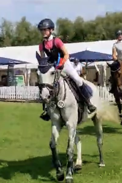 Show Jumping Pony up to 115 cm placed Since my daughter prefers riding larger horses, we are offering, on behalf of the breeder, a charming mare born in 2018. She is registered at 1.46 meters and has been placed in show jumping up to class L against full-sized horses, though her potential is far from exhausted. At four years old, she had her first foal and was then backed and started under saddle. In the arena, she is equipped with go, but she still enjoys being ridden and is therefore not suitable for the "smallest" riders. She is well-behaved in handling and daily work, and she is willing to go alone or in a group into the terrain. She is also familiar with riding without a saddle and similar activities. She comes directly from the breeder but has no registered pedigree. Her sire was a descendant of Colestus and, before being sold to the USA, was placed in show jumping up to class L. The dam is a pony mare, also without pedigree, and has been placed up to A** in jumping competitions, as well as being a series winner in E-level show jumping (she can also be viewed with us). A viewing and trial ride are possible by appointment.