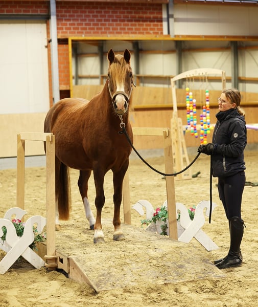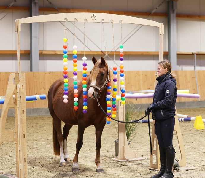 V: Dance Star AT M: Melli's Janomi by Golden Dancer - Aratoss - Brillant The mother was successful in all three disciplines and finished 5th in the final of the Bundeschampionat for Eventing. The mare is a sister to the Bundeschampion of Dressage Ponies, Melli's Glückskeks. Unfortunately, she can no longer be ridden competitively due to an injury, as she has slight rhythm issues at the trot due to an old injury, which does not affect her otherwise. However, she is perfectly fine for light recreational riding or for taking a few rounds with children. She feels no pain; the tendons in her right front hoof are slightly shortened from the injury she sustained at the age of two. She is in foal for 2026 by Gold Garant and has already had two beautiful foals with us. She foaled both times completely on her own, and I can also inseminate her alone. She lives in our large mare group year-round in a loose housing system and is very uncomplicated in all aspects. Upon request, the Gold Garant foal can be bought back at a fixed price of €3500 when it is 6 months old. Price: €7950