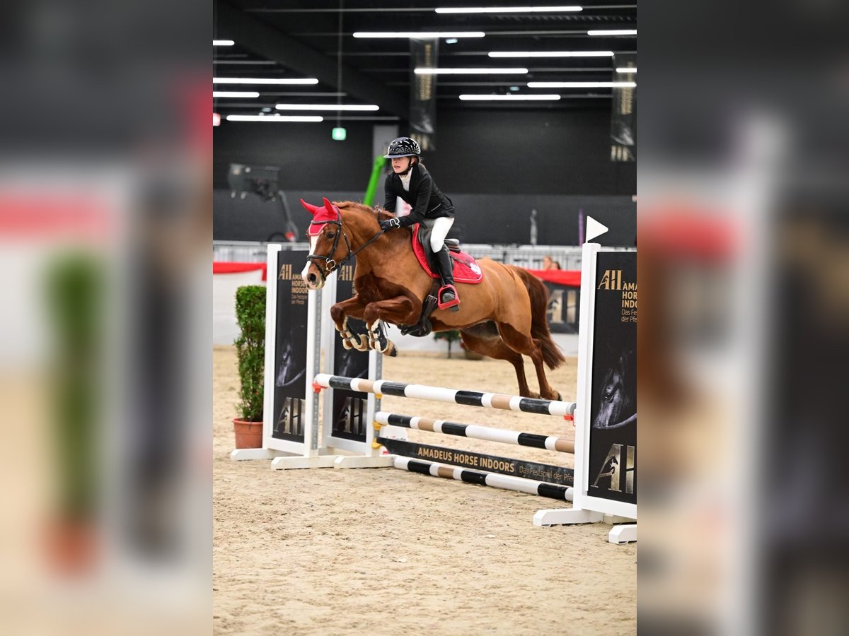 Exceptional pony with outstanding quality for competitive pony sport. Viva Moonlight is a 7-year-old German Riding Pony mare. Standing at 148 cm, she is exactly within the pony size range. She has competed up to 105 cm at shows. Last year marked her first competition season, during which she impressed with only faultless rounds. A pony of remarkable quality, extremely careful, and never makes mistakes. She is a pleasure to ride in dressage and well-trained. In handling, she is very calm and uncomplicated. A recent veterinary report with excellent X-rays is available.