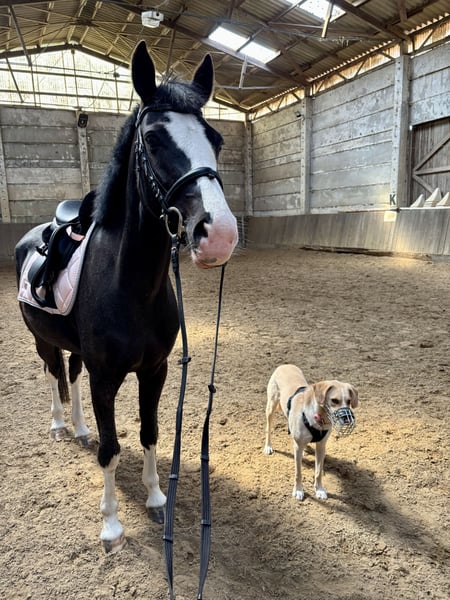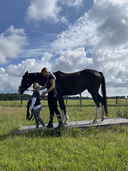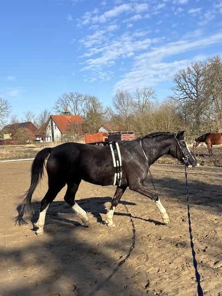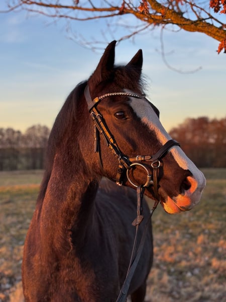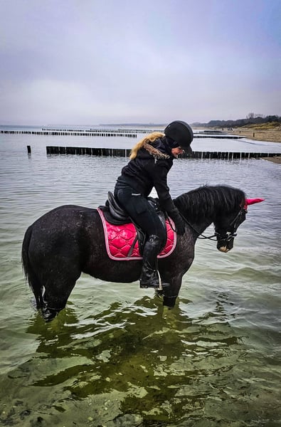 Zum Verkauf steht eine 8 Jährige Rappschimmel Stute mit einem Charakter aus Gold. („Fina“) Ich habe sie im August 2024 gekauft. Davor lief sie auch auf Turnieren. (Sollte aber nicht im Vordergrund stehen) Fina geht sehr gerne ins Gelände, auch alleine! Sie ist fleißig, aber abgeklärt. Lange Ausritte zum Strand machen wir öfter. Sie ist ein echtes Verlasspferd. Bodenarbeit bereitet ihr ebenfalls viel Spaß. Ich habe mit ihr auch mit Kindern gearbeitet im tierpädagogischen Kontext, dass hat sehr gut funktioniert. Sie ist ruhig und immer klar im Kopf. Sie steht brav beim Hufschmied und ist verladefromm. In der Herde kennt sie es mit Stuten und Wallachen zu stehen. Sie kennt sowohl Box, als auch Offenstall Haltung. Fina ist geimpft, die Zähne wurden regelmäßig gemacht und alle 6 Monate hatte sie eine osteopathische Behandlung. Beim Reiten auf dem Platz sowie im Training zeigt sie sich sensibel und mitunter anspruchsvoll, weshalb sie eine erfahrene Reiterhand benötigt. Für Anfänger ist sie bei weiterführender Arbeit nicht geeignet. Leider hat sich trotz intensiver Arbeit gezeigt, dass wir reiterlich langfristig nicht harmonieren. Und da sie ein besonderes Pferd ist, verdient sie jemanden, der perfekt zu ihr passt. Sie soll kein „Übergangspferd" sein, sondern ihr Zuhause finden. Wenn es nicht zu 100 % passt, bleibt sie. Platz vor Preis Für weitere Informationen, meldet euch gerne.