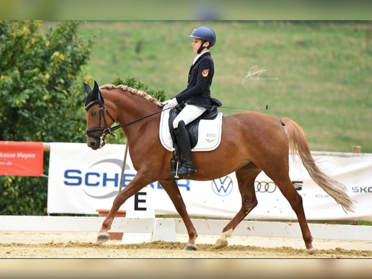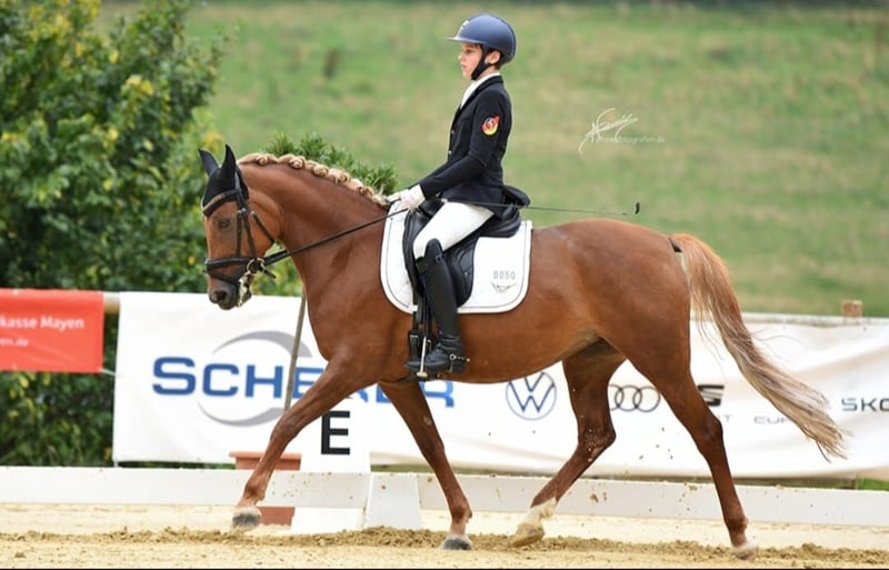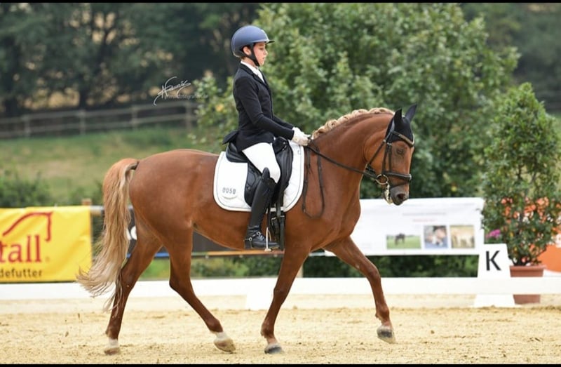Schweren Herzens suchen wir für unsere liebe leistungsstarke 8 jährige Deutsche Reitponystute (im Hengsttyp, Fuchs, Endmaß) mit tollen Anlagen und Turniererfahren ein neues 5* Zuhause. Sie ist Bundeschampionats Finalistin der 4 jährigen Pinys, Dressurpferde A platziert und mit meinem 11 jährigen Sohn A Dressur siegreich, mehrfach A** und L Dressur platziert. Zudem Kaderpony Dressur 2025 und 2026. Da abstammend von einem erfolgreichen Springpony macht sie auch einen guten Sprung, dies wurde aber nicht weiter gefördert Sie ist ein absolutes Herzenspony. Sie läuft sehr leicht durchs Genick, hat tolle GGA, einen hervorragenden, geregelten Schritt, eine tolle Galoppade und ist leicht zu sitzen. Sie beherrscht alle L und L**(FEI) Lektionen und ist als FEI Pony einsetzbar. Sie ist schon in jungen Jahren, da komplett lektionssicher, ein echter Lehrmeister. Man kann sie mit und ohne Ausbinder reiten. Kein Bocken, Steigen oder Durchgehen. Absolut lieb beim Verladen, während des Turniers oder im Gelände. Bei uns war sie nie krank und zeigte sich sehr robust. Wir wünschen uns von den neuen Besitzern ein Top Zuhause, wo sie weiter sportlich gefördert werden kann. Um Reittourismus vorzubeugen nehmen wir fürs Probereiten 35 Euro, die auf den Kaufpreis angerechnet werden. Das Pony wird nicht an Händler verkauft. Kauf von Privat, kein Händler