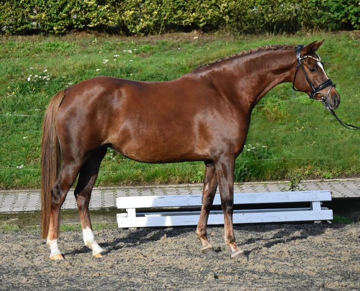 9-jährige, ca 153cm große Staatsprämienstute von Cocktailzauber x Famos WE, Vollschwester zu Cayuga San WE Cool Cat San WE ist im Umgang und unter dem Sattel artig. Sie verfügt über drei sehr gute Grundgangarten, insbesondere mit einem sehr auffälligen Trabablauf, immer mit angenehmen Go ausgestattet und leicht in der Hand. Sie springt ebenso einen kleinen Parcours und ist drinnen wie draußen unerschrocken. Aktueller guter Röntgentüv liegt vor ‼️Bei Interesse und für Videos bitte ausschließlich telefonisch oder über WhatsApp unter 017621729218 melden. Anfragen über ebay oder ehorses werden nicht beantwortet.‼️ Das Pferd wird nicht zur Verfügung gestellt und kann auch nicht auf Raten gezahlt werden.