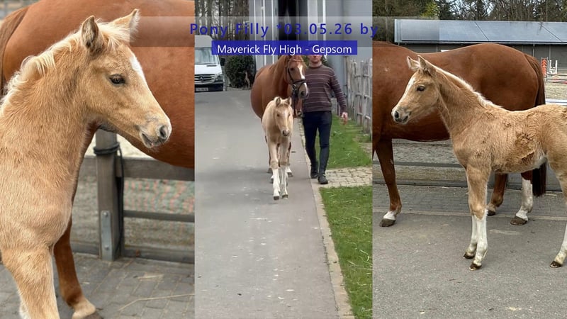 Sportpferde Bruhns: 0(049) 173 / 75 82 768, www.sportpferde-bruhns.de, email:sportpferde.bruhns@aol.com Ponystutfohlen geb. 05.03.2026 von Maverick Fly High - Gepsom - Kolibri, 5 Monate alt auf dem Video, Filly Pony born 05.03.2026 by Maverick Fly High - Gepsom - Kolibri, 5month old on the Video, Weitere Verkaufspferde auf www.pferdeverkaufsmarkt.de Unsere Hengststation: https://youtube.com/playlist?list=PLyBHusjG9UXqSSpriw2tFl38bsmOkEiOY Unsere Partner: CWD Deutschland https://eu.cwdsellier.com/de/ Harald Bruhns GmbH https://bruhns-gmbh.de PFG - Physio for goldjumpers https://www.physio-for-goldjumpers.de