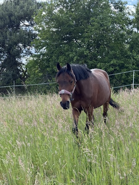 Wir suchen für unseren kleinen Schatz eine Familie mit Pferdeverstand. Er ist sehr menschenbezogen und gut erzogen. Er ist geduldig und Kinder zugewandt. Er ist sensibel und hat Geist. Er mag keine Hektik und keinen groben Umgang. Er ist überall brav und interessiert. Kleine Sprünge und gymnastizierende Dressurarbeit kennt er. Von kleinen Baumstämmen, Zirkuslektionen, fliegendem Wechsel bis Außengalopp ist ihm alles geläufig. Er steht in einer Box und hat ganzjährig Auslauf auf Winterkoppeln und Weiden. Er ist aktuell leider nicht im Training. Wir gehen viel mit ihm spazieren, haben angefangen tensegral mit ihm zu arbeiten. Die Reiterin ist leider zu groß geworden. Nur bei ernsthaftem Interesse gebe ich gerne genauestens Auskunft.