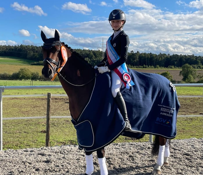 Schweren Herzens verkaufen wir unseren Ponywallach McD Danny Boy, da unsere Tochter mittlerweile leider zu groß für Ihn ist. Danny ist 13 Jahre alt und mit 1,45m eingemessen. Er kann zahlreiche Siege und Erfolge im Springreiter, E-Springen, E-Dressur und A-Dressur nachweisen. L-Lektionen sind auch kein Problem für ihn. Ein echtes Lehrpony, das seinem nächsten Reiter oder seiner nächsten Reiterin mit Sicherheit viel Freude und Erfolg bringen wird. Er kennt Hänger, Lkw, Laufband, Gelände, Koppel und vieles mehr. Bei ernsthaftem Interesse gerne telefonisch oder per WhatsApp melden. 017673926777 !! Kein Notverkauf - Platz vor Preis :) !!