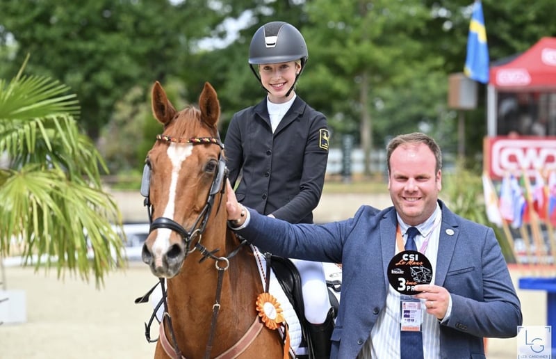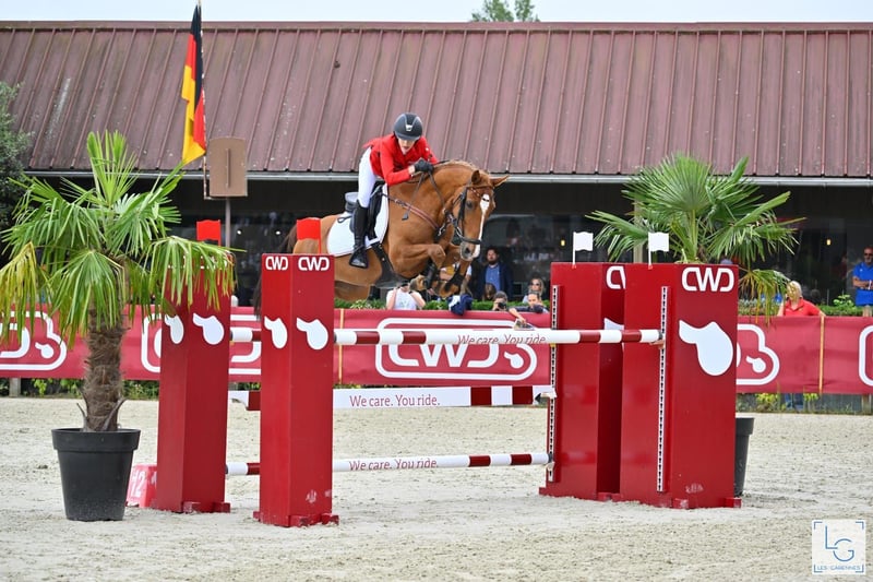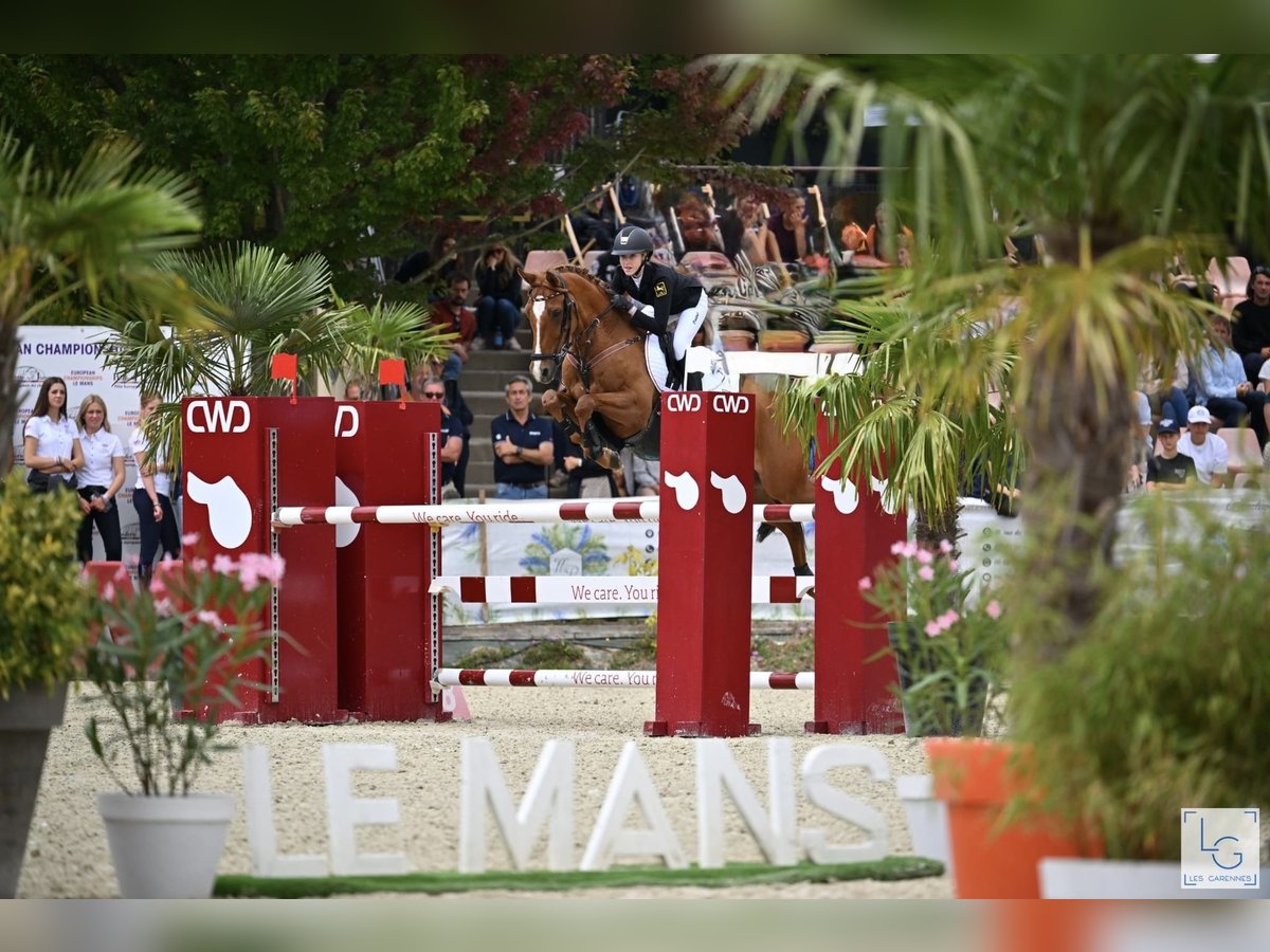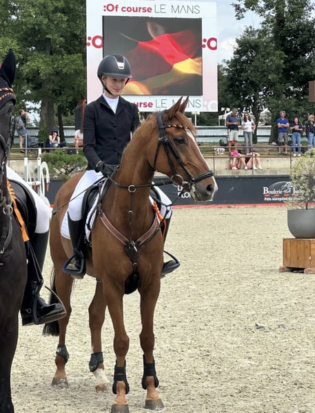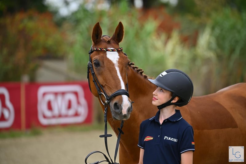 PONEY DE Saut d'obstacles allemand - GRAND PRIX – Championnat d'Europe – Membre de la famille Jango vient de terminer son dernier concours avec sa fille Viktoria, en montrant une fois de plus toute sa grande classe. Tous deux étaient sélectionnés pour le championnat national allemand en tant que membres du cadre fédéral pour le grand championnat en salle à Aix-la-Chapelle. Lors de la finale dimanche, Jango a révélé tout son potentiel pour les épreuves de très haut niveau, en étant sans faute lors de la ronde, puis également sans faute lors du barrage, avec un temps exceptionnel. Seule Mini Voss des Pays-Bas a finalement réussi à devancer Vicky et Jango de justesse pour la victoire. Le poney Jango a progressé jusqu’aux plus grands événements de saut, avec sa jeune cavalière, sans aucune expérience préalable à ce niveau avec son ancienne propriétaire. Il a connu des hauts et (rarement) des bas, mais ils n’ont jamais été découragés, ont toujours évolué ensemble et ont finalement pu montrer leur talent une fois de plus à Aix-la-Chapelle. Avec une cavalière ou un cavalier engagé, tout est possible dans le saut de poney avec Jango. Il possède beaucoup de go, une grande foulée et mesure 149 cm FEI, dans la taille officielle pour un poney. Ses succès sont innombrables, notamment en 2024 : 9 victoires dans la plus haute catégorie de pony 120-135 cm, vainqueur du championnat national allemand 2024, numéro 1 des poneys de saut allemands dans le classement Rimondo 2024, vainqueur de la grande étape de la Ponytour HGS nationale. Il a été plusieurs fois placé en Grand Prix internationaux. Sans faute lors de la ronde de la Coupe des Nations aux Championnats d'Europe 2025 à Le Mans, sans faute lors de la ronde et du barrage du « petit final » aux EM de Le Mans. Jango est un poney incroyablement intelligent, joueur, un partenaire idéal pour aimer et collectionner les rubans ! Nous confions Jango uniquement à des mains très expérimentées. Priorité à la qualité, pas au prix !
