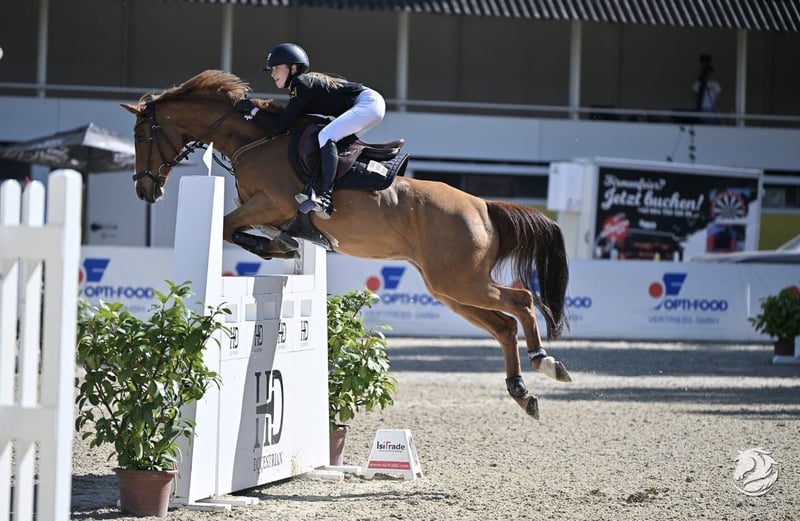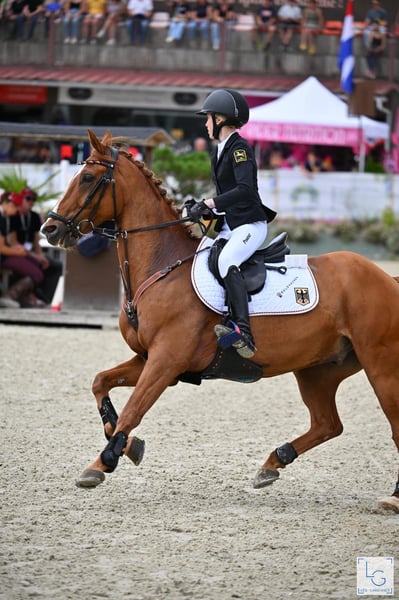 PONY DE SALTOS GERMÁNICO - GRAN PREMIO – EUROPEO – PARTE DE LA FAMILIA Jango acaba de participar en su última competición junto a su hija Viktoria, demostrando una vez más toda su gran calidad. Ambos fueron seleccionados como miembros del equipo nacional alemán para el gran campeonato en pista cubierta en Aachen. En la final del domingo, Jango mostró su enorme potencial para saltos realmente altos, completando el recorrido sin errores, igual que en el desempate, con un tiempo sobresaliente. Solo Mini Voss, de Holanda, pudo arrebatarles la victoria a Vicky y Jango por poco. El pony Jango ha llegado a los niveles más altos del salto con su joven amazona, sin tener experiencia previa en este nivel con su anterior propietaria. Han enfrentado altibajos (raramente bajos), pero nunca se han dejado desanimar, siempre han evolucionado juntos y, finalmente, han demostrado su talento una vez más en Aachen. Con una amazona o jinete comprometido, todo es posible en el mundo del salto con ponis con Jango. Tiene mucho impulso, una enorme zancada y mide aproximadamente 149 cm en la altura oficial FEI, en la categoría de ponis. Sus logros son innumerables, solo en 2024: 9 victorias en la categoría más alta de ponis de 120-135 cm, ganador en la final del campeonato alemán 2024, número 1 de los ponis de salto alemanes en el ranking rimondo 2024, ganador de la HGS Ponytour Large nacional. Ha sido varias veces colocado en concursos internacionales de Gran Premio. Sin errores en la ronda por equipos en las European Championships 2025 en Le Mans, y sin errores en la ronda y en el desempate en la pequeña final de las EM en Le Mans. Jango es un tipo increíblemente inteligente, juguetón, un compañero de ensueño para amar y para lucir trofeos. Solo entregamos a Jango en las mejores manos. ¡Prioridad a la calidad, no al precio!