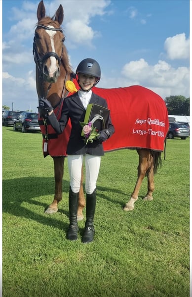 Nederlands Jumping Pony - Grand Prix – EK – Deel van Familie Jango heeft samen met dochter Viktoria net haar laatste concours gereden en heeft opnieuw haar grote klasse laten zien. Ze waren als lid van het Duitse bondsprogramma genodigd voor het grote indoor kampioenschap in Aken. In de finale op zondag liet Jango zijn enorme potentieel voor echt hoge springen zien: foutloos in de ronde, foutloos in de barrage met een overweldigende tijd. Alleen Mini Voss uit Nederland kon Vicky met Jango uiteindelijk net voorblijven en de overwinning pakken. Pony Jango heeft zich met haar jonge amazone omhoog gewerkt naar de hoogste springwedstrijden, hoewel hij op dit niveau nog geen ervaring had met de vorige eigenaar. Er waren hoogte- en (zelden) dieptepunten, maar beiden hebben zich nooit laten afleiden, altijd samen verder ontwikkeld en uiteindelijk hun kunnen opnieuw laten zien in Aken. Met een betrokken amazone/amazone is met Jango in de pony-springwereld ALLES mogelijk. Jango heeft veel go, een enorme galop en meet met FEI 149 cm precies de juiste pony-maten. De successen zijn ontelbaar, vooral in 2024: 9 overwinningen in de hoogste ponyklasse 120-135 cm, winnaar van het finale Duitse kampioenschap 2024, nummer 1 van de Duitse springpony's in het rimondo-ranking 2024, winnaar van de nationale HGS Ponytour Large. Meerdere keren geplaatst in internationale Grand Prix’s. Foutvrij in het landenwedstrijd rondje op de Europese kampioenschappen 2025 in Le Mans, foutvrij rondje en barrage in het ‘kleine finale’ op EM Le Mans. Jango is een ongelooflijk intelligente pony, speels en een droompartner om lief te hebben en om de ribbons mee te verzamelen! Jango geven we alleen in de allerbeste handen. Plaats gaat voor prijs!