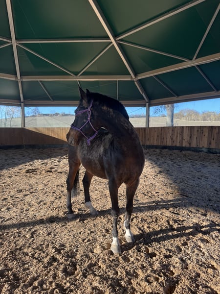 Lieber 13-jähriger Reitponywallach abzugeben • ca. 1,50 m Stockmaß, barhuf • lebt im Offenstall und möchte auch weiterhin so gehalten werden • schmiede- und verladefromm • regelmäßig bei Tierarzt, Zahnarzt & Osteopath • kennt Hunde, Kühe, Kinder, Traktoren usw. • kennt Sattel und Trense, wurde in allen drei Grundgangarten gearbeitet • aktuell nicht untern Sattel da es mit uns nicht harmoniert. • lernwillig in der Bodenarbeit • benötigt einen erfahrenen & liebevollen Reiter • komplettes Zubehör kann zusätzlich erworben werden Aktuell wird er aus Zeitgründen nur vom Boden aus gearbeitet, ist aber grundsätzlich geritten. ❗️ Keine Reitschulen oder Händler❗️ Bitte nur ernsthafte und realistische Anfragen.