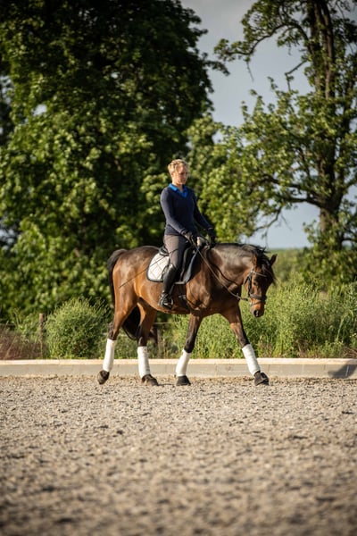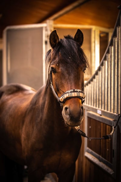 Dieser wunderschöne braune Wallach (Deutsches Reitpony, 151 cm, geb. 2013) sucht ein liebevolles neues Zuhause, in dem er als zuverlässiger Partner geschätzt wird. Er steht in 50181 Bedburg und wird schweren Herzens aus privaten Gründen abgegeben – Platz vor Preis steht dabei an erster Stelle. Ausbildung: Unser Wallach wurde mehrmals wöchentlich dressurmäßig gearbeitet und ist solide auf L-Niveau ausgebildet und beherrscht alle Seitengänge sicher. Springen wurde bisher nur freizeitmäßig gemacht – dabei zeigt er aber deutliches Talent und Freude an der Arbeit über dem Sprung. Auch im Gelände ist er stets brav, gelassen und verlässlich – allein wie in der Gruppe. Dank seines Stockmaßes ist er sowohl für Jugendliche als auch für Erwachsene bestens geeignet und macht im Familienalltag eine tolle Figur. Aktuell wird es aus zeitlichen Gründen nur locker gearbeitet, aber sollte durch regelmäßiges Training wieder schnell in seine alte Form kehren. Charakter und Umgang: Er ist ein braver, ehrlicher und willensstarker Partner, der im Training gerne mitmacht, wenn man ihn fair und konsequent behandelt. Hat man einmal sein Vertrauen, ist er ein absolut verlässlicher Begleiter, der seinem Menschen jeden Tag Freude bereitet. Beim Schmied ist er unkompliziert, im Gelände absolut zuverlässig und auch beim Verladen brav – aktuell allerdings etwas aus der Übung. Gesundheit und Haltung: Er ist gesund, robust und hatte bislang keine gesundheitlichen Probleme oder Befunde. Eine aktuelle AKU liegt nicht vor, kann aber auf Wunsch selbstverständlich organisiert werden. Er lebt derzeit im Aktivstall und fühlt sich dort sehr wohl. Wünschenswert wäre eine ähnliche Haltung – Offenstall oder Box mit täglichem, ganzjährigem Weidegang. Abstammung: Vater: Nobel Nagano Muttervater: Hamrik’s Golden Arak Eine gute Abstammung, die sowohl Rittigkeit als auch Leistungsbereitschaft erkennen lässt. Zubehör: Zubehör kann nach Absprache mit übernommen werden - darunter ein maßgefertigter Hennig-Dressursattel. Besichtigung und Probereiten sind selbstverständlich nach Absprache möglich. Mir ist sehr wichtig, dass er in ein liebevolles Zuhause kommt, wo er weiterhin artgerecht gehalten, gefördert und geliebt wird. Platz vor Preis – das Herz entscheidet.