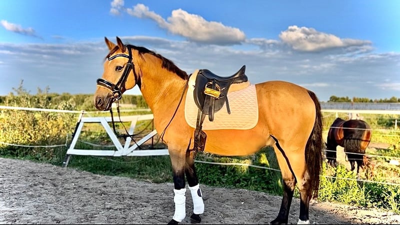 Videos and additional pictures to follow 🎥 Home before price, we are looking for a wonderful home for him as we are selling him only for personal reasons, hence home before price. Our Charmi is a pony that one could only wish for. He is not only an absolute partner in sports but also a friend for life in everyday situations. With his people-oriented nature and friendly demeanor, he charms everyone – he greets you with a whinny and is always motivated to work. Due to his size, he is suitable for both small adults and children. Perhaps the perfect partner for a parent-child duo. In terms of sports, he has everything you could want: In dressage, he has been successfully presented up to L level, and in jumping, he has already competed up to A level. He is super responsive, positively sensitive, and learns quickly. Every training session with him is simply a joy because he works honestly and always strives to do it right. Even outside the arena and course, he is a reliable pony: We have been to the beach together, attended clinics and events – always confident, always with us. Charmi is a pony with whom you can not only celebrate sporting successes but also create many beautiful memories. A current clinical examination shows no findings. If you are interested and would like more information, feel free to message me. Perhaps also share what you have planned and how he would be living. We look forward to hearing from you.