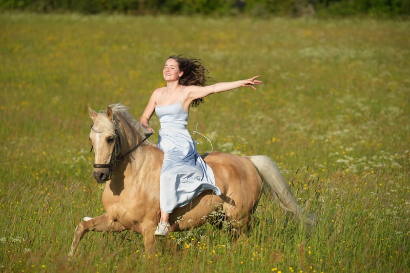 I am offering my 2010-born German Riding Pony gelding by Donnerwetter x Good Guffi for sale. He is a Palomino gelding standing just under 1.50 meters, which makes him well-suited for covering a variety of riders. He is actively competing in dressage at a solid L level, but also performs some elementary M-level movements and has jumped up to A** with me (a beginner). I had him on loan for a year and recently started reconditioning him alongside my training as an equine specialist with a focus on riding. His character is particularly remarkable. He is an absolute confidence-builder and was instrumental in introducing me to the sport years ago. I have also given beginner riders regular lessons on him, and he is exceptionally well-behaved both in handling and riding. He always wants to please and is motivated during work. Toffee stands correctly on his hooves and is farrier- and loading-friendly. A few years ago, he was diagnosed with loose-patella syndrome, which was treated once. The veterinarian confirmed that it causes no pain or impairment. It is only noticeable when he has little movement and spends a lot of time in the box. With normal training and regular turnout, it’s hardly detectable and has never caused any issues during the five years I’ve owned him. I see him as an excellent match for a mother-and-child combination, where he can serve as a teacher while still being worked correctly and healthily. Toffee is a little professor who teaches proper riding. He’s not a pony that just bucks around on top, but one that responds accurately to correct aids. His extremely calm nature combined with good basic gaits makes him the perfect instructor and sport partner. Feel free to contact me with any questions. :)