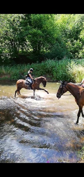 Hallo, da meine Tochter ab Oktober studieren gehen wird, sind wir auf der Suche nach einer zuverlässigen Reitbeteiligung für 2x die Woche. Genial ist ein 15 jähriger Reitpony x Spanier Mix, Stockmass 152cm und ein echtes Verlasspferd. Er ist in der Dressur bis Klasse M sowie im Springen bis Klasse A ausgebildet und wird Freizeitmäßig mit dem Schwerpunkt Dressur gearbeitet. Du solltest ein gutes Gefühl fürs Pferd haben und ohne Hilfszügel reiten können. Genial kennt keinerlei Unarten, geht auch sehr gerne ins Gelände und hat an Bodenarbeit Spaß. Genial steht in Katzweiler im Aktiv Stall der Bonanza Ranch, Halle, zwei Außenplätze, sowie ein tolles Ausreitgelände vorhanden. Teilnahme an Reitunterricht ist möglich. Kostenbeteiligung nach Absprache. Melde dich gerne, wenn du Genial kennenlernen möchtest. Bis dann!