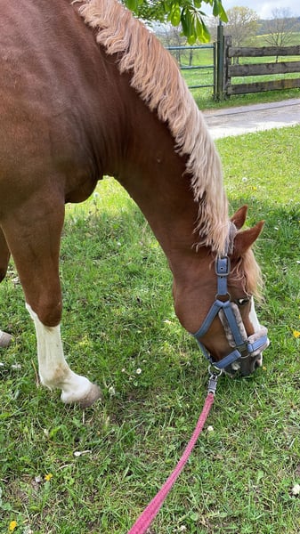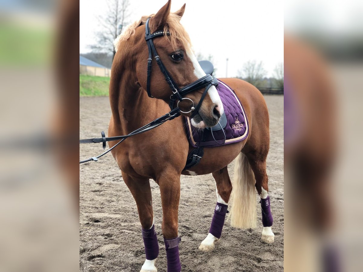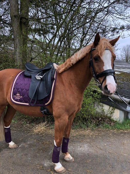 We are selling our German Riding Pony gelding (born 13.05.2010, 1.42 m, chestnut). He is a real eye-catcher with solid training: • Confident in dressage at level A, also completed show jumping at level A* • Competition experience until 2021 • Ridden mainly for leisure and in riding lessons since 2021 • Regularly in training, well-groomed, and healthy Character: He needs some time to get used to his person but quickly builds trust. When riding, he is somewhat forward-going but can be motivated and can move quickly and energetically. Ideal for riders looking for an honest, safe pony that doesn't "explode" right away. Not a children's pony. We recommend him for teenagers from 12 years old. Area of use: • Leisure • Dressage lessons • Trail riding in the woods/terrain Lucky is regularly seen by the farrier (no shoes) and all his vaccinations are up to date. Price: Negotiable €7,900 It is important to us that he goes to good hands where he will be further developed and bring joy.