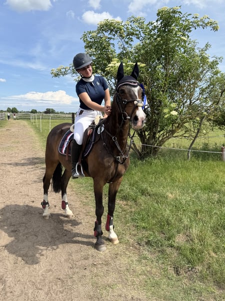 Ich suche für meinen 16 jährigen Wallach Kalle (Stockmaß: 146) eine zuverlässige Reitbeteiligung. Ihr solltet definitiv gute Reiterfahrungen mitbringen, da er nicht für Anfänger geeignet ist. Er ist beim reiten sowie im Umgang super lieb, nur etwas verfressen. Aktuell stehen wir in Rüdersdorf, weshalb ihr flexibel sein müsst (man kommt nur mit Auto hin). Im Winter (ca. Oktober/November bis April/Mai) steht er nämlich immer in Rüdersdorf, wo ihr euch auch 1x im Monat für Stalldienst eintragen müsst. Die restlichen Monate steht er bei uns privat in Erkner. Der Preis setzt sich so zusammen, wie oft ihr kommt. Ich biete dir an, 1-2x die Woche zu kommen (während der Turniersaison von Mai bis September eher 1x). Fürs Reiten wären es immer 20€ und fürs longieren/bodenarbeit 10€. Reitunterricht gibt es bei mir nicht, im Winter kann man mit meiner Trainerin sprechen, dann kannst du sicherlich auch da reitunterricht nehmen, den du aber selbst zahlen musst. Wenn ihr mindestens 14 Jahre alt seid und bis zu 70kg wiegt, da es ein Pony ist, meldet euch gerne bei mir. Für weitere Fragen stehe ich offen.