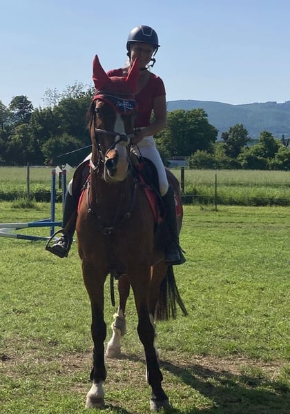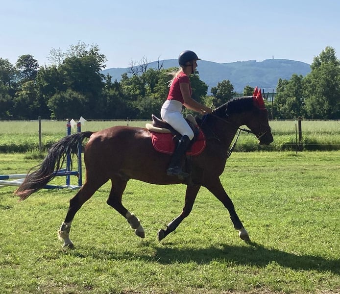 ❗Standort NIEDERÖSTERREICH❗ Verkaufe meinen heuer 16 Jährigen, 156cm großen XXL Ponywallach. (Deutsches Reitpony mit komplettem Abstammungsnachweis). Tolles Lehrpferd für die Dressur und für den Turniereinstig oder als gehobenes Freizeitpferd. Ist bis L ausgebildet und am Turnier erfolgreich gewesen(keine aktuellen Ergebnisse aufgrund meines Handicaps auch die letzten beiden Jahre nicht auf dem Niveau in der Dressur gearbeitet). Sollte nicht mehr groß gesprungen werden da er sich letztes Jahr auf der Weide verletzt hatte - hat davon abgesehen keine Einschränkungen! Verträglich in der Herde mit Stuten und Wallachen, vom Rang her Mittel. 4 Fach Beschlagen und das braucht er leider auch dauerhaft da er ohne nicht gehen kann und zu schnell das Horn abläuft. Super brav im Umgang und beim Arbeiten(so brav das ich ihn aktuell mit Gipsbein in allen 3 Gangarten kurz reiten kann). Kennt Handarbeit, Dualaktivierung, Dressur, Ausreiten(geht auch alleine, da aber nicht so entspannt wie mit anderen), geht sehr gerne ins Wasser und kann auch Stangen Arbeit bis Cavaletti springen machen. Wird aktuell bewegt(auch geritten), ist aber durch meinen aktuellen Ausfall weder koditionell noch Muskuläre in einem trainings Zustand fürs Turnier, daher auch unter Wert. Ideal wäre für ihn in der Nacht eine Box, kennt aber auch Offenstall, dann sollte es aber eher eine kleine Gruppe sein mit wirklich genug Platz für alle zum Liegen. Wird nicht an Schulbetrieb oder Händler abgegeben. Er bringt sein Komplettes Zubehör mit, was in dem Preis includiert ist.