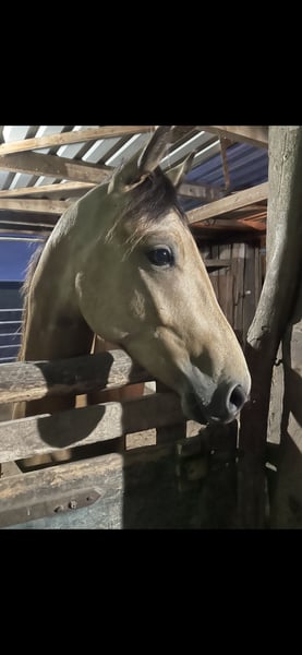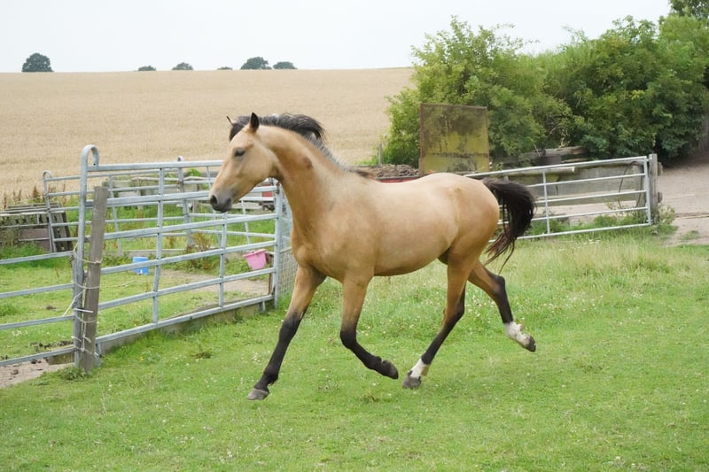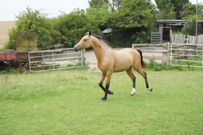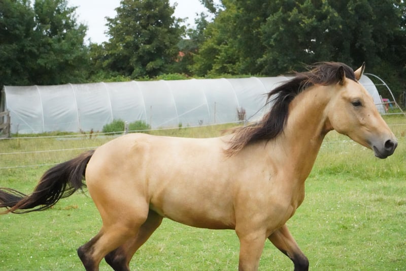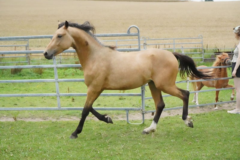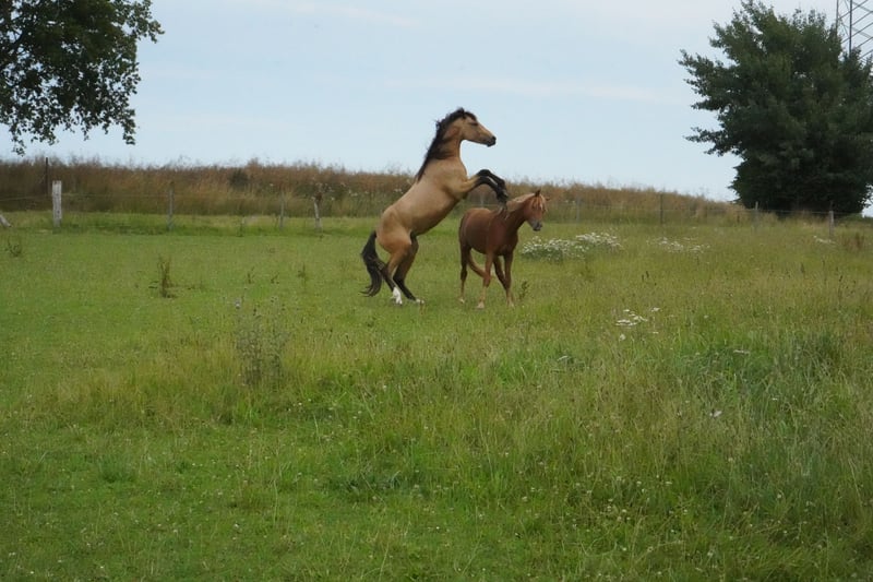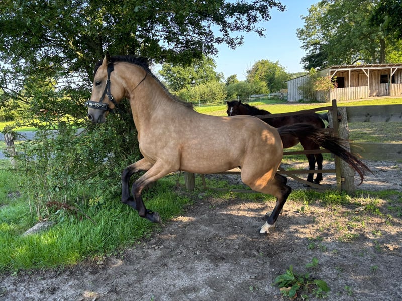 **Sales Advertisement for a German Riding Pony** For sale is a charming stallion born in 2023. **Features:** impeccable character - **Breed:** German Riding Pony - **Color:** Buckskin - **Height:** currently 138 cm - he will reach his final height - **Discipline:** Dressage, Show Jumping, Eventing As he also possesses stallion quality, he could be interesting as a breeding stallion in the future. This charming stallion impresses with his friendly nature and high willingness to learn. He is well-suited for dressage and already shows a lot of potential. He is growing up in a species-appropriate environment and has already gained initial experience in handling with people. Casper is a half-brother to Lilou, who is also for sale. If you are interested or have any further questions, please feel free to contact me. Viewings are possible by appointment. We look forward to your message!
