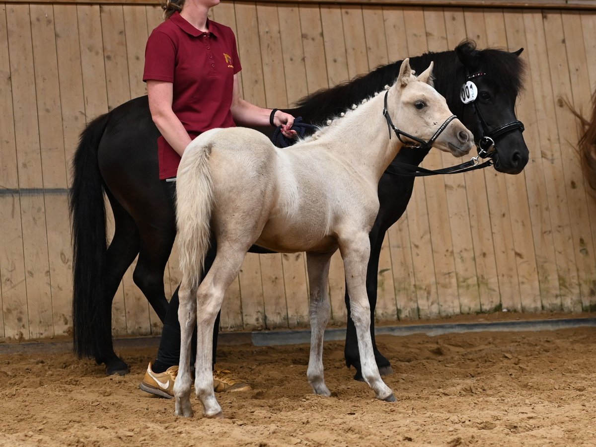 Deutsches Reitpony in der beliebten Farbe Palomino. "Checker Charly" ist ein ultrasüßes Kerlchen ... mit tollem Gebäude und bestem Interieur. Er kennt bereits den Umgang mit Kindern und ist allzeit freundlich, nett und nicht aufdringlich. Völlig unerschrocken und immer korrekt im Handling geht er sogar mit kleinen Kindern spazieren. Er liebt es zu kuscheln und freut sich über jede Aufmerksamkeit! Bei der Fohlenschau wurde er prämiert. Seine Mami ist eine zauberhafte Kinderreitponystute die eine absolute Lebensversicherung ist. Sein Papa ist der Cremello Hengst Söl'rings Cuvée. Ebenfalls mit bestem Interieur ausgestattet bringt dieser auch Sportlichkeit mit sich. Checker Charly zeigt bereits jetzt hervorragende Anlagen und Bewegungen, die ihn zu einem vielseitigen und vielversprechenden Kandidaten für allerlei Sparten der Reiterei macht. Er ist bereits gelegt, natürlich geimpft und mehrfach entwurmt, sowie regelmäßig dem Schmied vorgestellt. Endmaß schätzen wir auf 135-145cm Gemessen am 10.12.2025 (Alter 1 Jahr und 8 Monate) = 127cm Auf Wunsch kann er zur weiteren Aufzucht noch bei uns stehen bleiben.
