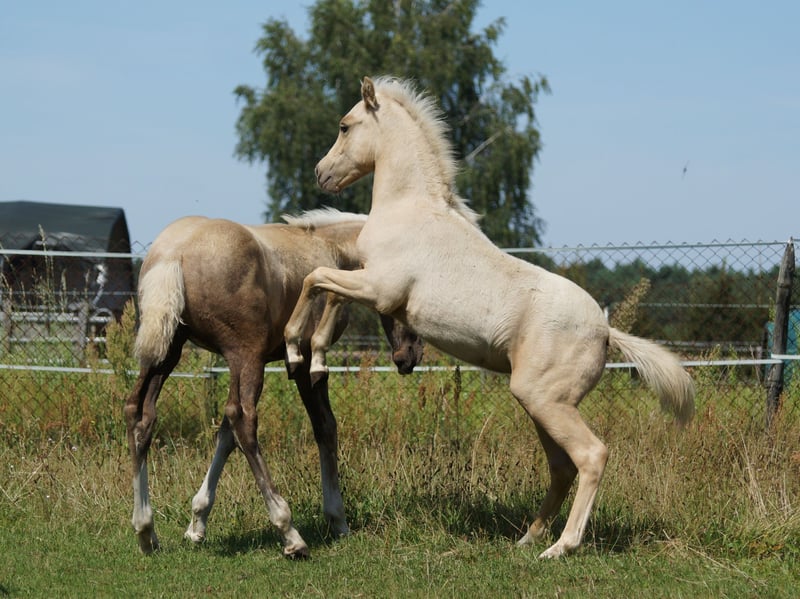 Duits Paard Pony veulen in de populaire Palomino kleur. "Checker Charly" is een ultra-zoete kleine kerel ... met een geweldig exterieur en het beste interieur. Hij weet al hoe hij met kinderen om moet gaan en is altijd vriendelijk, aardig en niet opdringerig. Hij kreeg een prijs op de veulenkeuring. Zijn moeder is een betoverende kinderponymerrie die een absolute levensverzekering is. Zijn vader is de Cremello hengst Söl'rings Cuvée. Ook hij is uitgerust met het beste interieur en brengt sportiviteit met zich mee. Checker Charly toont nu al een uitmuntende aanleg en beweging, wat hem een veelzijdige en veelbelovende kandidaat maakt voor alle vormen van rijkunst.