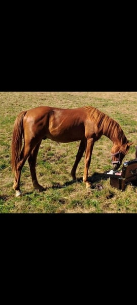 **Sales Advertisement: German Riding Pony Gelding** I am looking for a loving new home for my beautiful chestnut gelding, born in 2023. This charming German Riding Pony is ideal for riders seeking a reliable and honest partner. He impresses with his curious and open nature, is very eager to learn, and has appealing basic gaits. Currently, he is on summer pasture with 5 other geldings/stallions. This herd is mixed in age (where he could stay for a while after the purchase if interested). He is well-socialized and knows how to interact with other horses. He is friendly towards people and is accustomed to daily handling. He is halter-trained and allows for loading, grooming, and care. He also behaves exemplary with the farrier. I wish for him to find a loving new home where he can continue to gain positive experiences. **Features:** - Breed: German Riding Pony - Gender: Gelding - Year of Birth: 2023 - Color: Chestnut - Current Height: 1.41m - Quarterback's Junior x Cartusch If you are interested or have questions about this wonderful pony and would like to offer him a loving home, I look forward to your message.