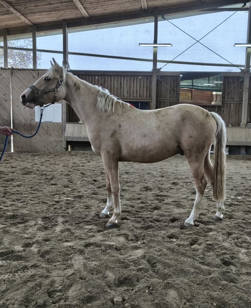 Verkaufe meinen 2 jährigen Palomino Pony Wallach von Golden Daim. Er ist sehr Menschen bezogen. Gustav steht korrekt da und freut sich ein Reitpony zu werden.