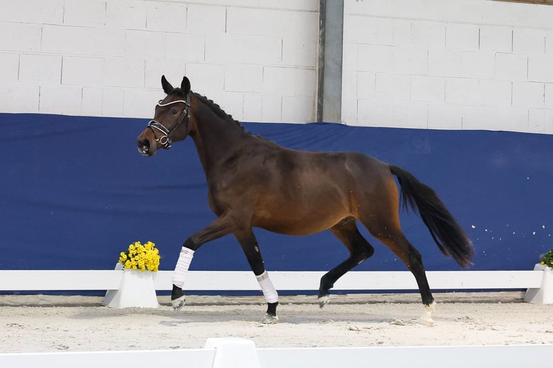 In unserer Kollektion stehen streng selektierte Youngster f�r alle Anspr�che: Ausbildungs-, Zucht- und Kinderponys Hier gelangen Sie zur Gesamtkollektion: https://ponyforum.auction Der zweijährige Wallach Wischhoffs Choclait Chip steht noch in der körperlichen Entwicklung, aber man kann schon klar seine hervorragenden Reitponypoints erkennen. Er ist ein nobler Youngster in dunkler Jacke, der sich schon sehr ausbalanciert und mit hervorragendem Grundschwung zu bewegen weiß. Sein Vater FS Clarimo gewann die Silbermedaille beim Bundeschampionat und ist in der FEI-Klasse erfolgreich, die Mutter Wischhoffs Easy Girl brachte bereits den Landeschampion Wischhoffs Casanova, der auch schon turniererfolgreich in Dressurprüfungen der Klasse L ist.